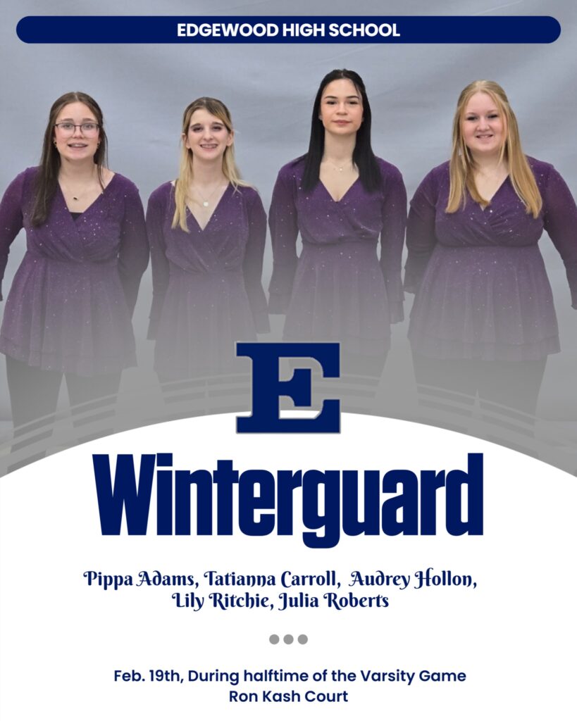 The Edgewood High School Winter Guard is bringing the energy to halftime! ✨ Catch them lighting up the floor during the Boys Varsity Basketball game on Thursday, February 19th! Come cheer on Pippa Adams, Tatianna Carroll, Audrey Hollon, Lily Ritchie, and Julia Roberts as they debut the routine they’ve been pouring their heart and hard work into all season. Spins. Tosses. Precision. Power. 💙 Don’t miss it let’s pack the gym and show up loud for our Cougars! 🐾