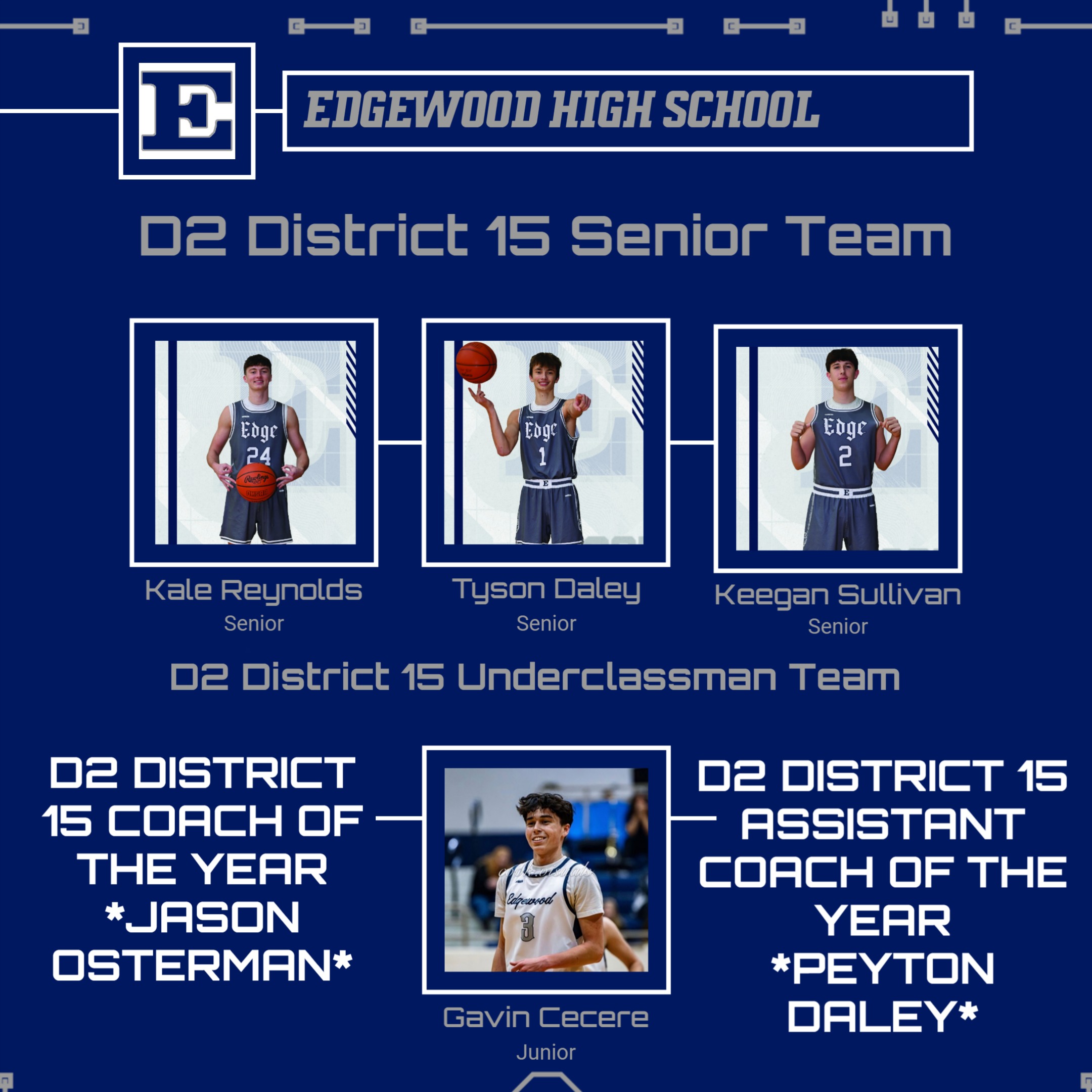 Congratulations to our Edgewood Boys Basketball players and coaches who earned District 15 Division II Honors this season! ๐Ÿ€๐Ÿ‘