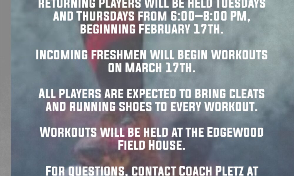 Edgewood Boys Soccer Workouts will occur on Mondays, Wednesdays, and Fridays. 6:15-8:15 pm at Edgewood High. For current high school students,...